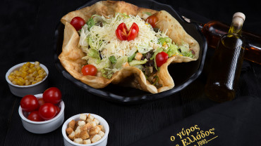 - Λόλο ρόσο – άισμπεργκ – άγρια ρόκα – τομάτα – κεφαλοτύρι – βαλσάμικο – φύλλα τορτίγιας – σώς λαχανικών