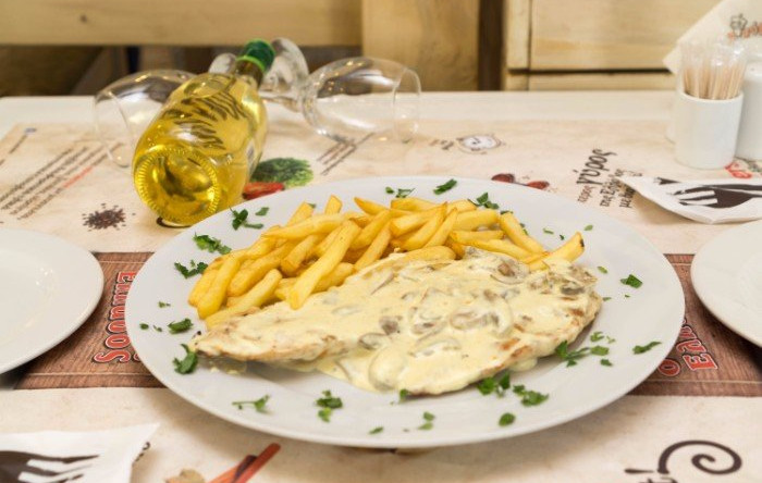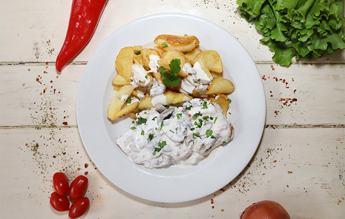 Σνίτσελ κοτόπουλο, περιχυμένο με μια ακαταμάχητη κρέμα γάλακτος, και «παντρεμένο» με πεντανόστιμα μανιτάρια, μαϊντανό, και φρεσκοτριμμένο πιπέρι…μια πλούσια γευστική εμπειρία, που θα σας μείνει αξέχαστη! Τι περιμένετε, λοιπόν; Προσθέστε την τώρα στο καλάθι!